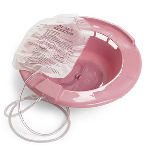 Sitz Bath is designed to fit most standard toilet bowls, which has slightly contoured edges for maximum comfort. It is made of durable plastic, which is portable, so you can easily put it on the toilet seat when necessary and remove it after use. The sitz bath comes with 60" tubing and a 2000cc graduated bag.